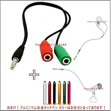 おまけ付き [ アルミ ニウム 合金 タッチペン ] ヘッドホン や イヤホン と マイク を 1つのジャック に スマホ タブレット の イヤホン端子 ( 3.5mm ・ 4極 ) ケーブル [ 3.5mm 4極 (オス) 3.5mm ステレオ ミニ (メス) + マイク 入力 (メス) ] セット マイク ヘッドホン ヘッドセット プラグ コンボ ジャック アダプタ ー イヤホン イヤフォン ヘッドフォン マイク 端子